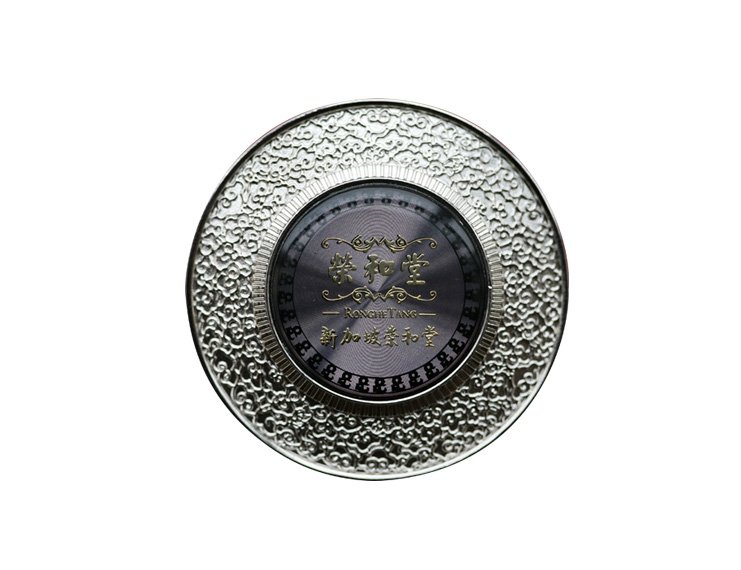 圓牌的設(shè)計(jì)莊重而富有韻味,結(jié)合了榮和堂的創(chuàng)業(yè)宗旨和中華民族的傳統(tǒng)文化,針對(duì)圖案專(zhuān)門(mén)定制了制作模具,使得立體效果非常出色。