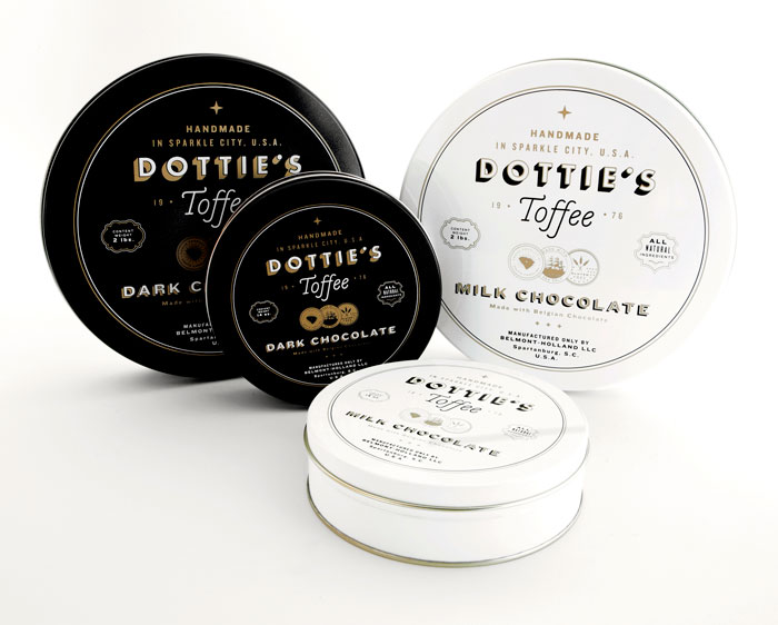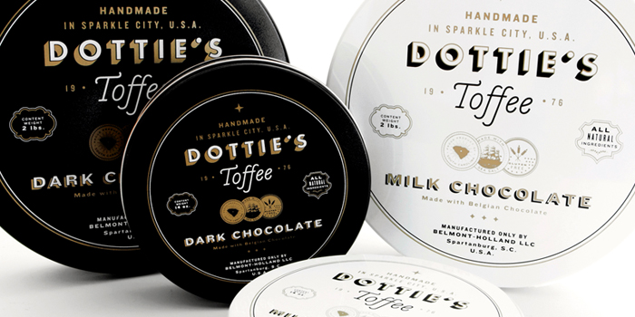 “多蒂的太妃糖是一個慶祝一切熟悉的甜蜜。點開始制作自己的太妃糖1976和她愛她的手藝是會傳染的。她的孫子尼克進行太妃糖制作傳統(tǒng)的這些天,他賣到全國范圍內(nèi)的零售商。我們創(chuàng)造了一個品牌是甜的,復(fù)雜多變的太妃糖本身既懷舊與當(dāng)代。明亮,過渡色對比的黑色,白色和灰色以及大膽,簡單的文字定義的品牌在包裝,抵押和網(wǎng)站。